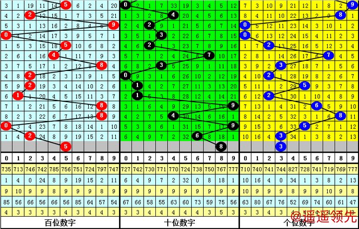 百位号码奇偶比为3:3,奇偶号码出现比例相当,本期防止开出奇数号码;大小比为3:3,基本相当,本期看好开出大号。
